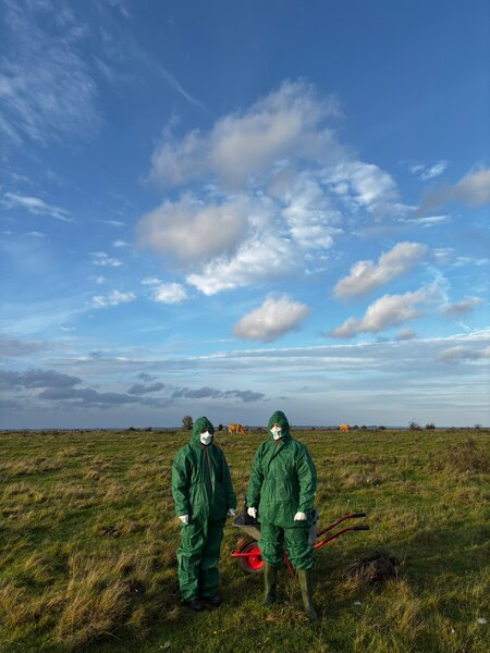Ende Oktober stellte uns der Ausbruch der Vogelgrippe vor unerwartete Herausforderungen. Da das Veterinäramt personell stark ausgelastet war, erhielten wir Schutzausrüstung und unterstützten gemeinsam mit Helfer*innen bei der Bergung verendeter Kraniche.