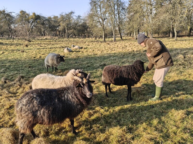 Ab der ersten Januarwoche durften wir auch wieder die ersten Schafe bei uns auf der Weide begrüßen. Mit ein bisschen Futtern lassen sie sich sogar streicheln und sind eine schöne Gesellschaft für uns.