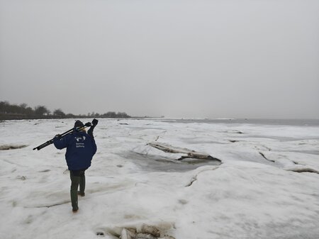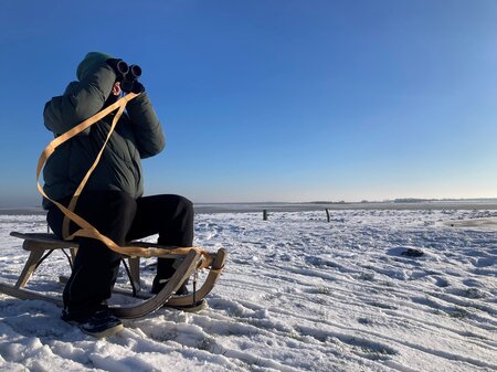 Hauptsächlich treiben sich Sing- und Höckerschwäne und verschiedenste Enten hinter der Eiskante auf dem Wasser herum. Doch Langeweile kommt nicht auf. Dort wo keine Vögel zu zählen sind, kann man das Eis erkunden und den besonderen Anblick genießen.