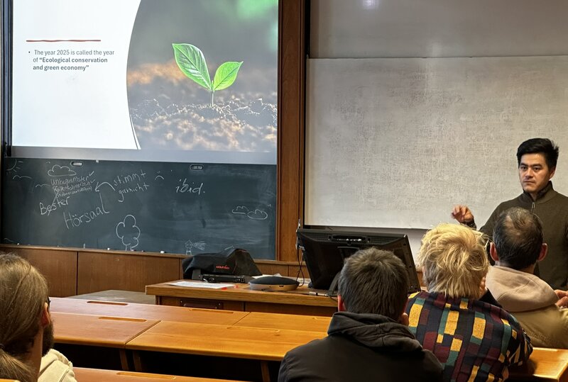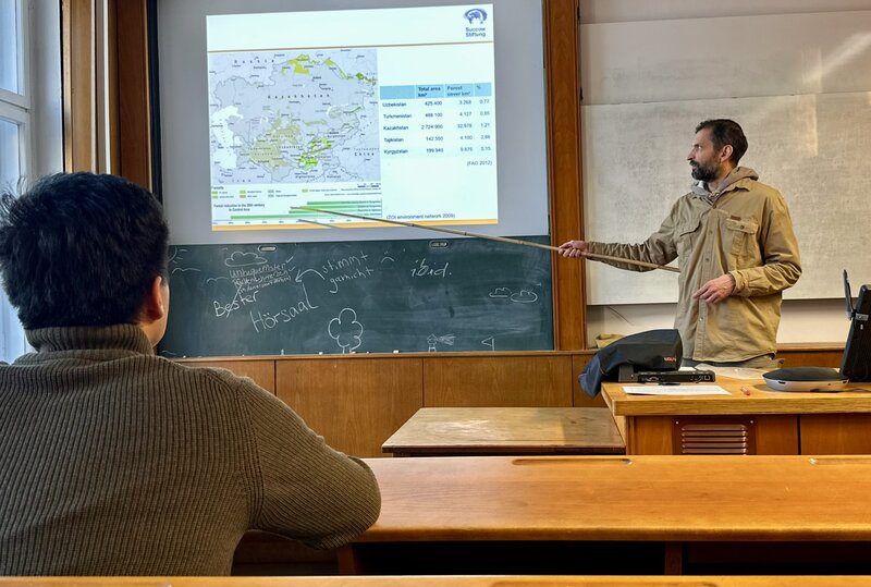 Christian Welscher gives a lecture on international conservation projects. Photo: J. Wunderlich / Michael Succow Foundation