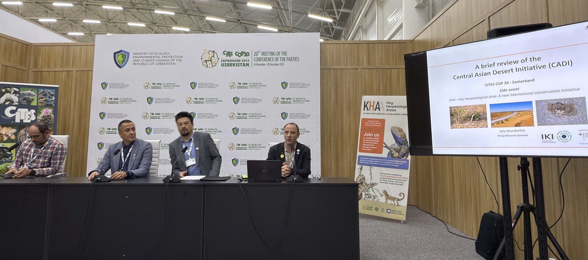 During the side event, the Michael Succow Foundation presented on their specific experiences in conservation efforts and coorperation in multi-stakeholder environments in Central Asia and with focus at cold winter deserts — an ecosystem particularly relevant for Central Asian herpetofauna. Additional inputs addressed global and regional threats to reptiles and amphibians as well as the proposed criteria for establishing KHAs. The session concluded with a panel discussion and the formulation of preliminary recommendations for advancing the initiative within larger international conservation frameworks such as IUCN.