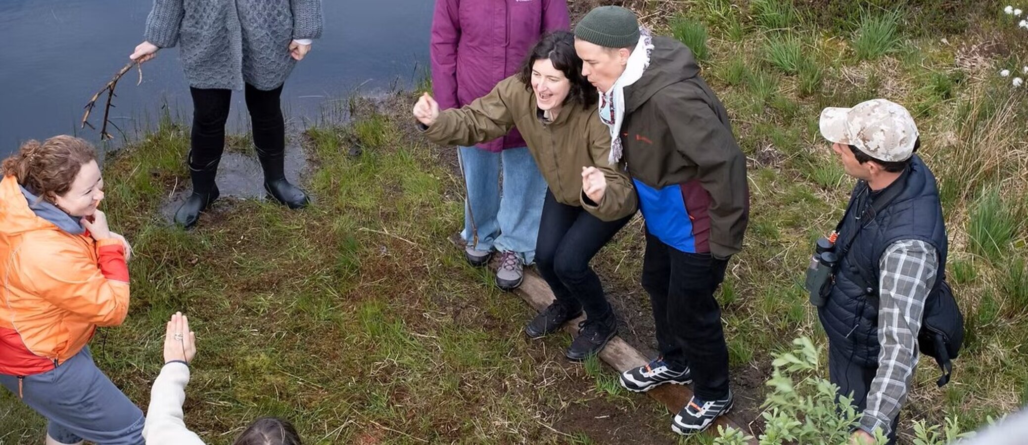 The work addresses ideas of coexistence, protection, and stewardship of peatlands, blending the voices of the Institute for Multi-Species-Singing with audio material from a paleoecological coring into the bog.