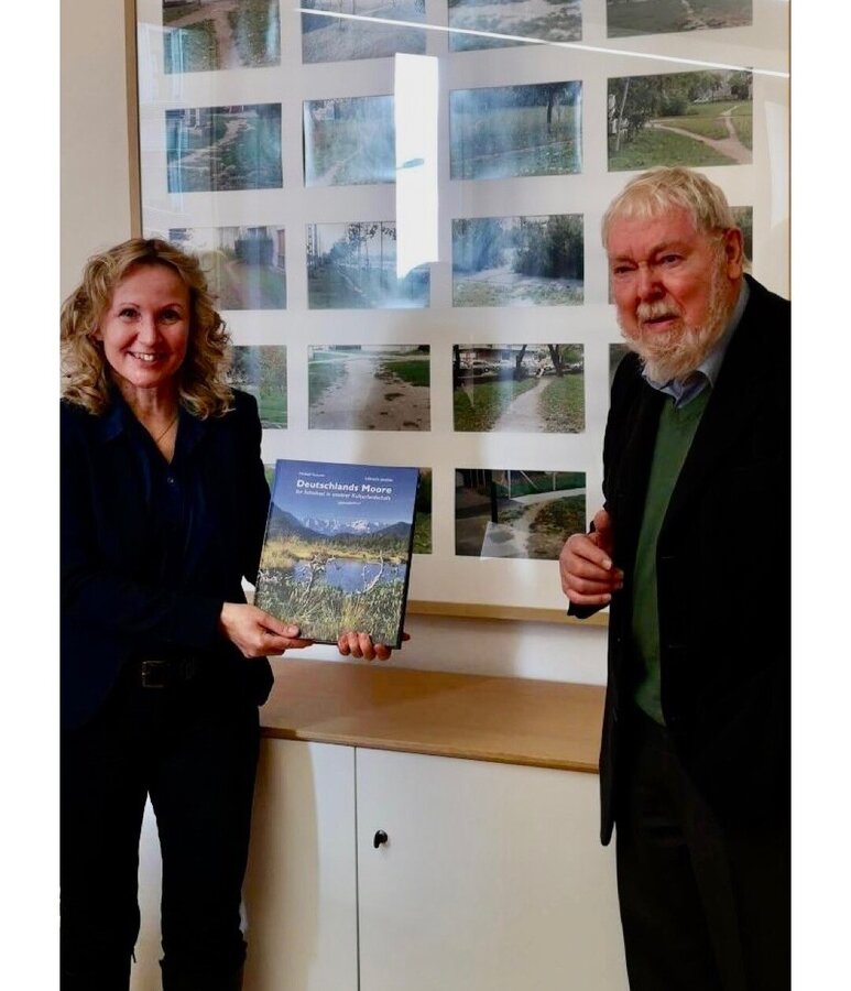 Der Umweltschützer Succow überreichte außerdem sein neu erschienenes Buch „Deutschlands Moore - Ihr Schicksal in unserer Kulturlandschaft“ an die Bundesumweltministerin.