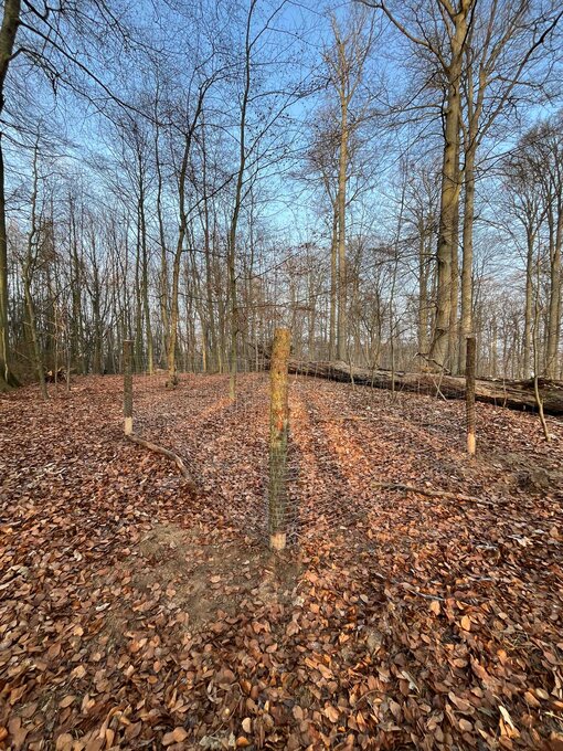 Gemeinsam mit Mitarbeitenden der Stiftung errichteten sie zwei stabile Weisergatter auf der Kuppe des Hohen Berges. Diese sollen jungen Bäumen Schutz vor Verbiss durch Reh- und Rotwild bieten und ermöglichen es, die Entwicklung des Baumnachwuchses mit und ohne Schutz zu vergleichen.