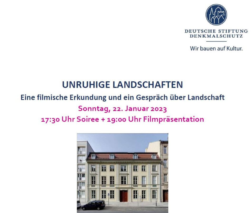 Im Anschluss an die Filmpräsentation lädt die Deutsche Stiftung Denkmalschutz ein zum Gespräch bei einem Glas Wein.