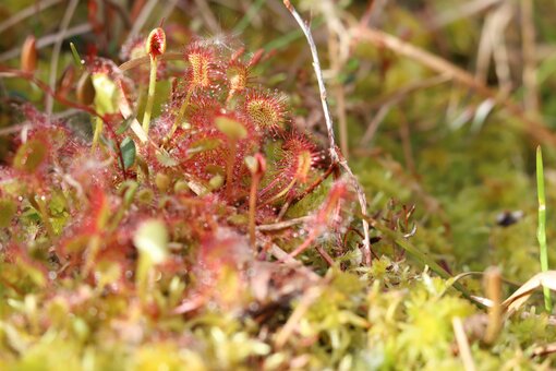 Die hier vorkommenden Arten sind wahre Überlebenskünstler, denn sie brauchen es sauer, nährstoffarm und pitschepatsche regennass. Das sind Standortbedingungen, die aufgrund großflächiger Entwässerungen kaum noch vorkommen. Viele der Arten sind extrem selten geworden und stehen auf der Roten Liste. Die Succow Stiftung plant derzeit Maßnahmen zur umfassenden Wiedervernässung des Moores, um die Populationen langfristig zu schützen.