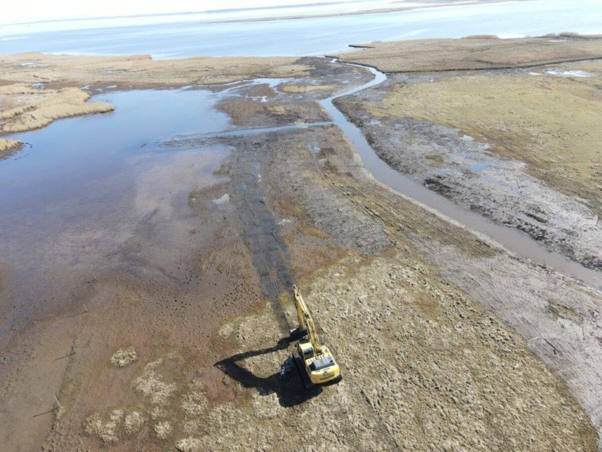 Diese Arbeiten werden nun nach der Pause zum Brutvogelschutz ab heute fortgesetzt. Es werden weitere Priele beräumt, neue Furten gebaut und alte abgebaut. Die Situation der Brut- und Rastvögel wird dabei von uns beobachtet und der Bauverlauf ggf. angepasst, um die Störung der Maßnahmen möglichst gering zu halten. Ab dieser Woche findet außerdem eine Mahd verschilfter Bereiche statt, um die Flächen sukzessive in Salzgrasland umzuwandeln.
