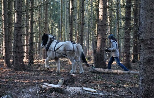 Naturschonende Fichtenfällung mit Pferdeeinsatz