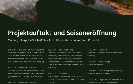 Am 3. April 2023 findet die Saisoneröffnung im NABU-Besucherzentrum Rühstädt statt. Auch unser Stifter Michael Succow ist dabei.